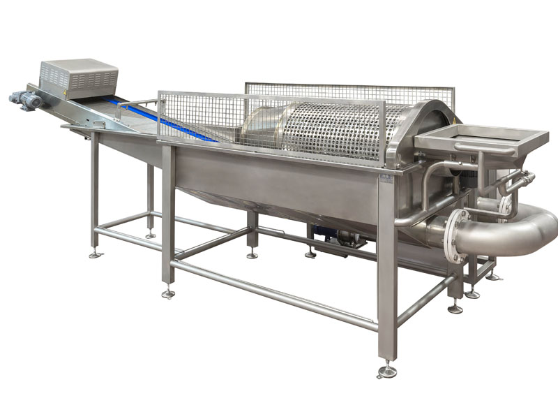 The washer removes starch from the potatoes to produce an optimum-quality product.